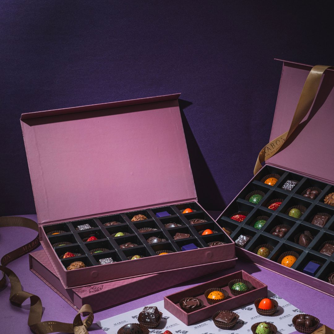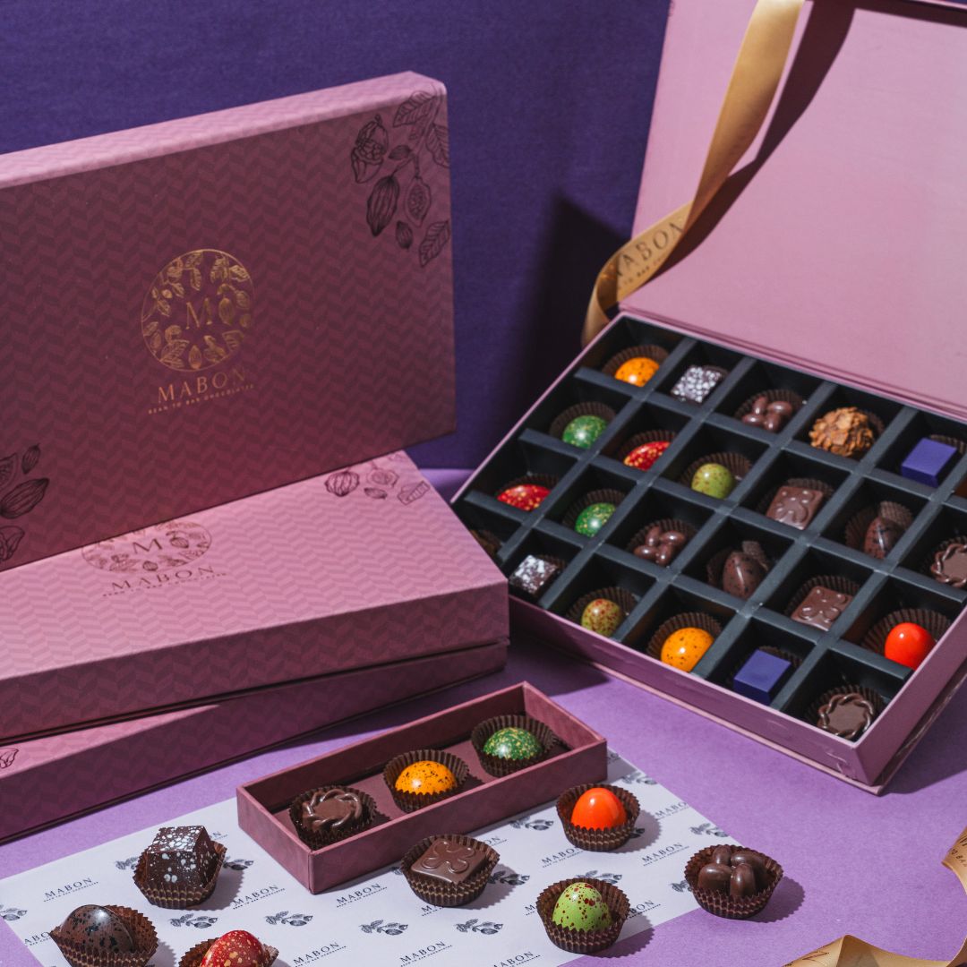 Treat yourself or someone special to our luxurious chocolate bonbon box, featuring two of each, an exquisite selection of indulgent flavours. Flavours include buttery salted caramel, crunchy fruit & nut, smooth hazel bliss, bold coffee bean bliss, zesty orange opulence and creamy hazelnut truffle, nutty peanut perfection, aromatic rose pistachio, fruity raspberry caramel, tropical passionfruit, hazelnut truffle & biscoff cheesecake.